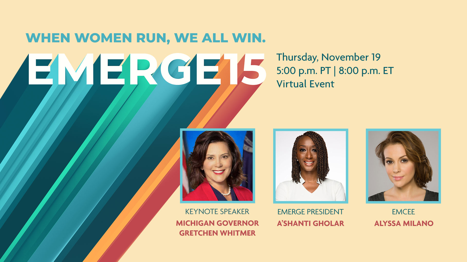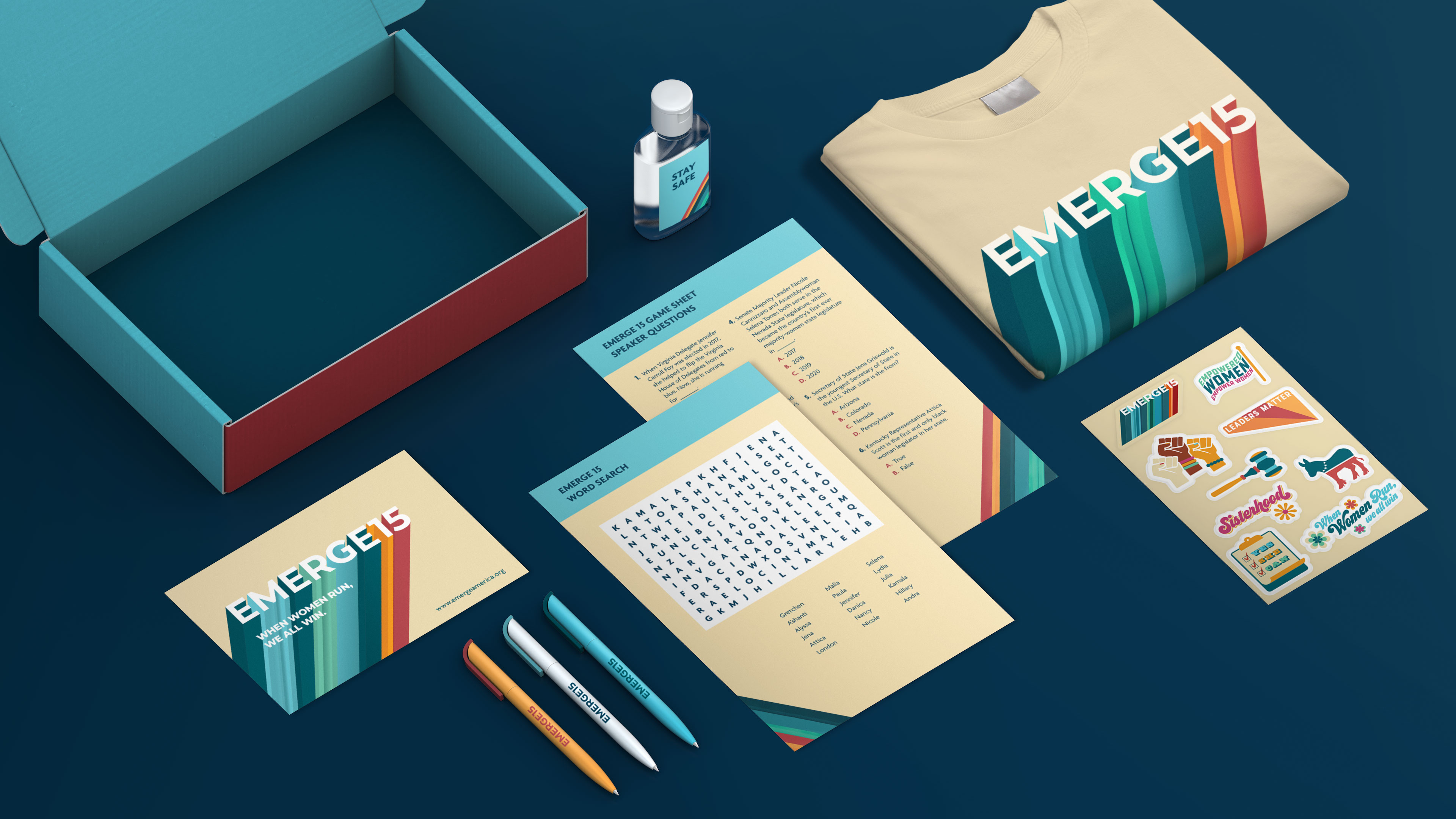 Our animated pre-show opener, speaker announcements, and ending credits bookended the event, while infographics throughout highlighted the impressive stats Emerge has earned over its 15 years in action — expanding from one state to 30, training more than 4000 women, and celebrating the successful election of more than 2000 female politicians since 2002.
