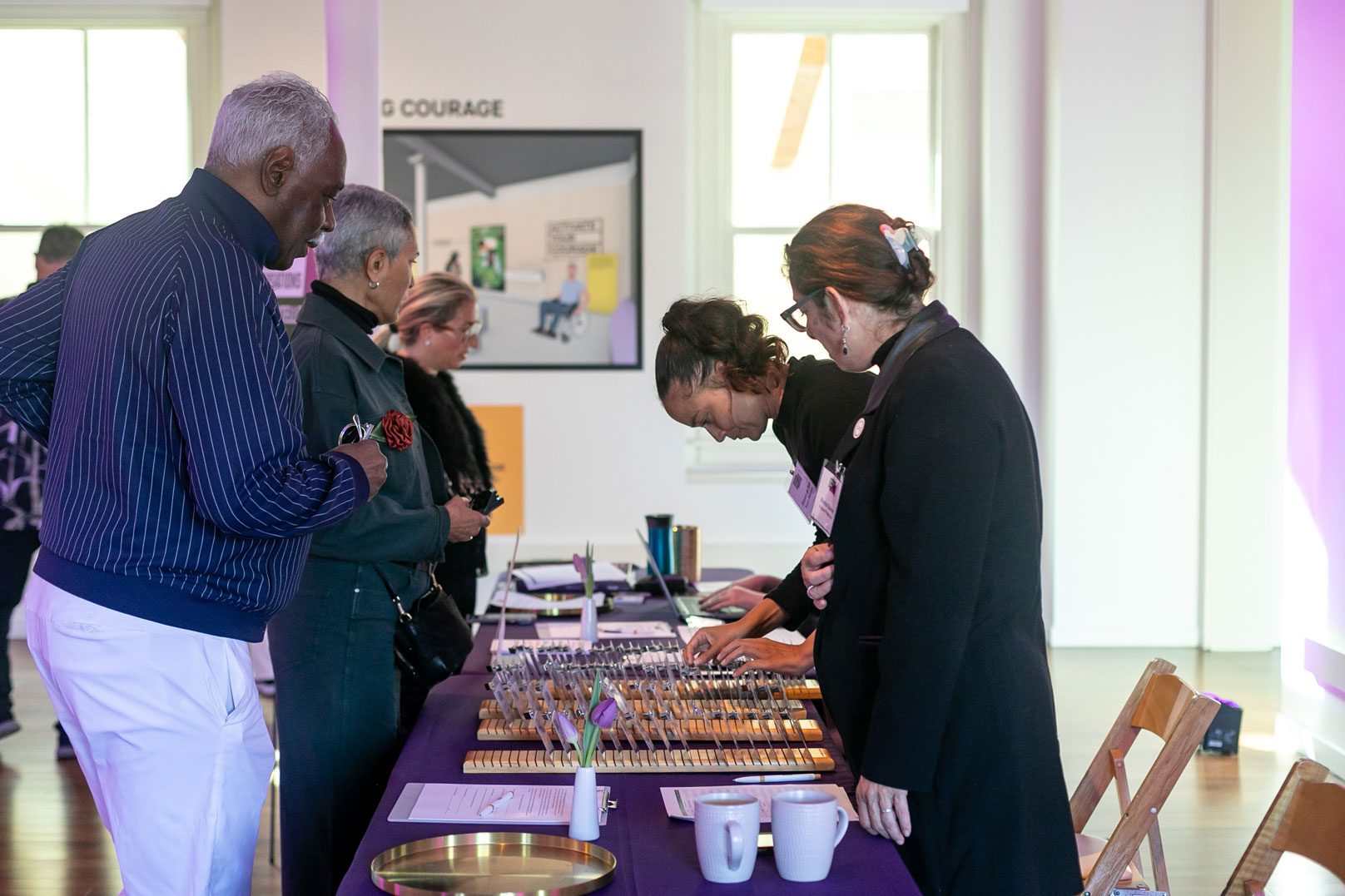 A third gathering centered on community, connection, and collective action, exploring how storytelling can drive both individual and collective healing. Guests were invited into reflective conversations designed to cultivate empathy and courage, drawing on practices woven throughout the Courage Museum experience.