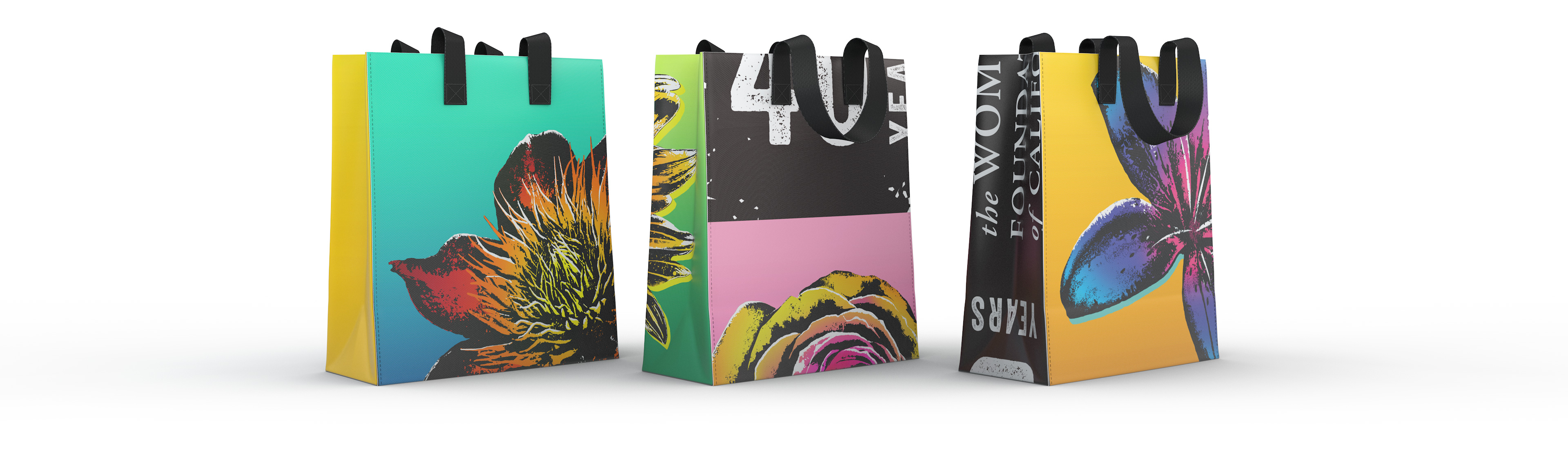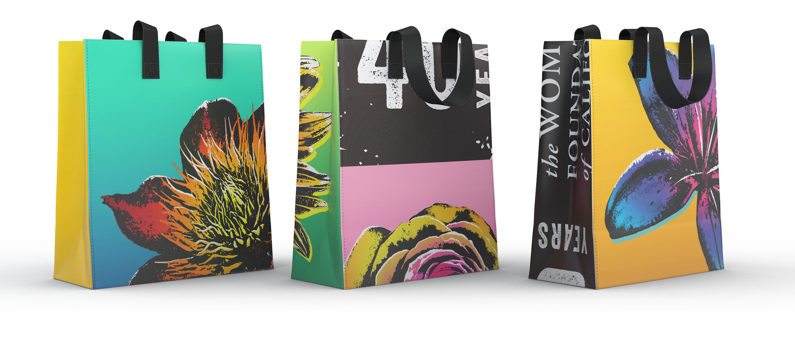 After the event, the Women’s Foundation repurposed the banners that we created for the galas and had them converted into reusable tote bags. The panels of the totes were each taken from a unique piece of banner so no two bags were the same, making each one a collector’s item and colorful symbol of 40 years of advocacy for women.