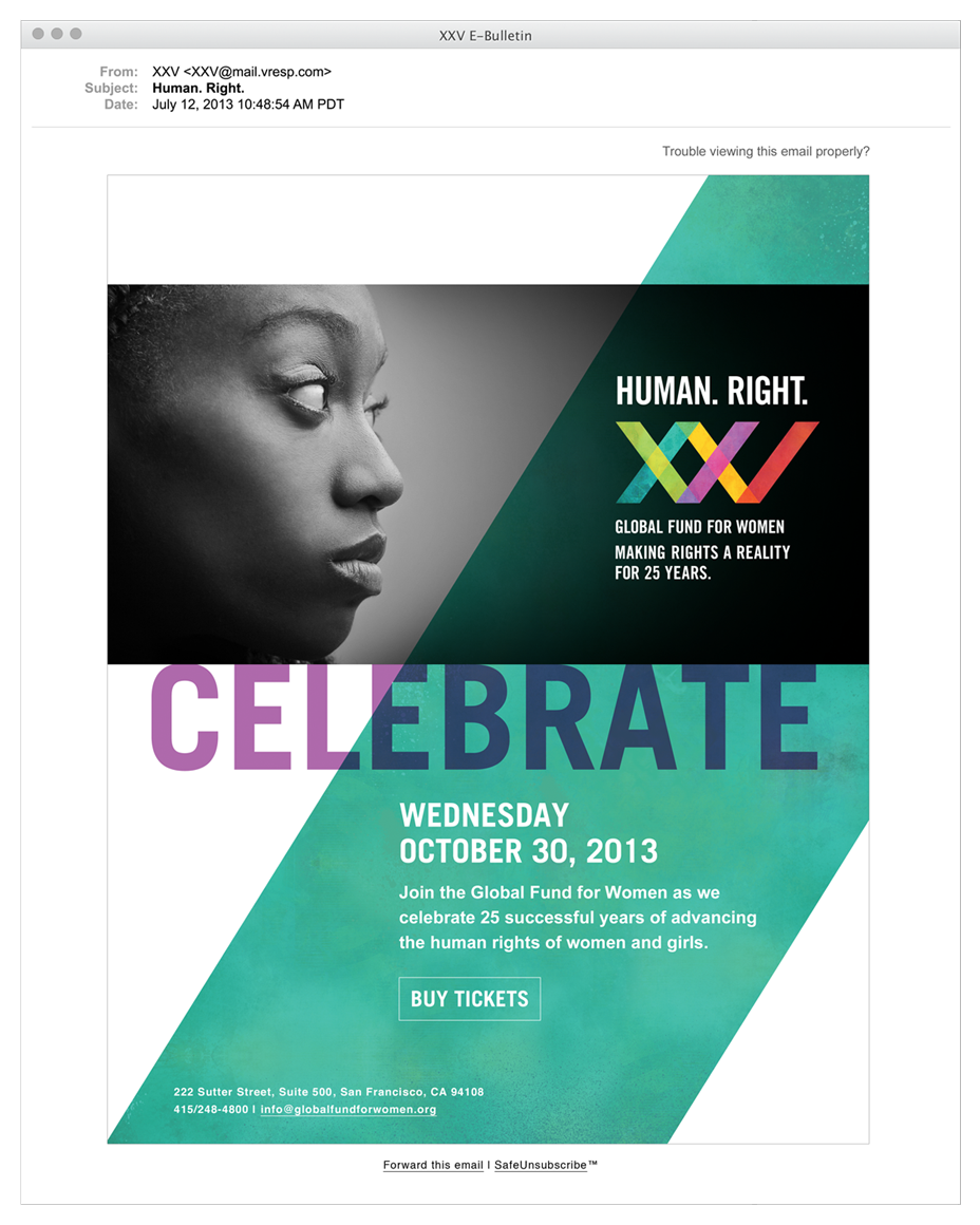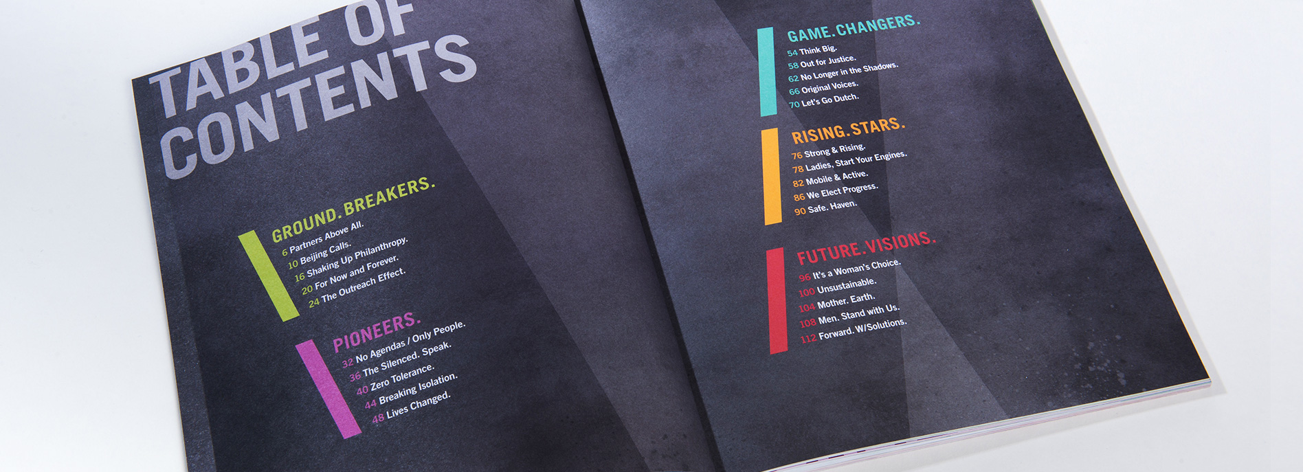 For the two 25-year anniversary galas, we designed invitation packages, anniversary stationary, and a colorful 100+ page book to commemorate the milestone. With five chapters featuring five different articles each, we focused on a wide variety of stories to cover the breadth and depth of the success of the Fund over their long tenure, ending on a future looking chapter.